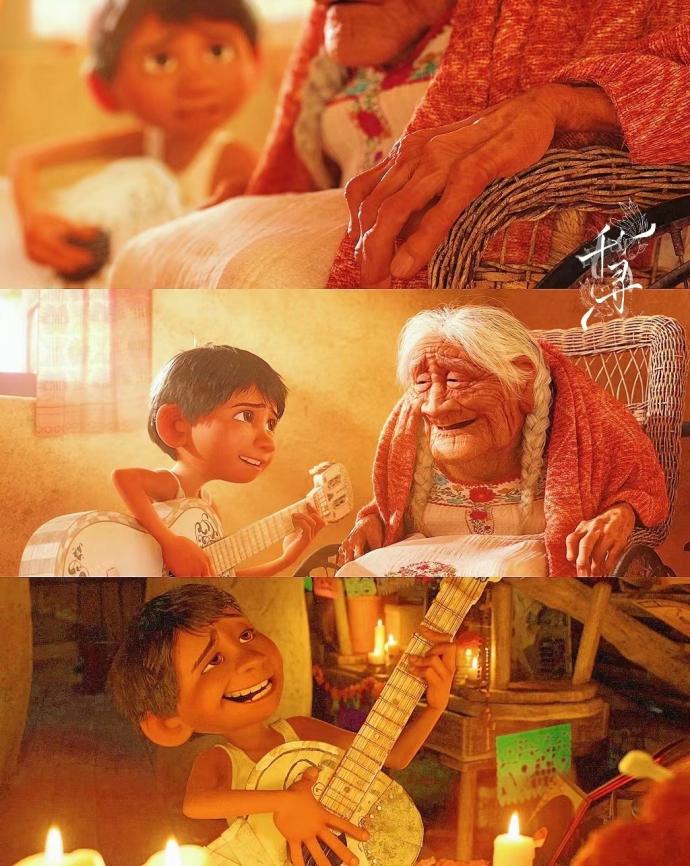 死亡往往被籠罩著傷感的情思,本片卻以一種新穎的形式溫柔對待往生者,冥靈之境充斥著飽滿的音樂狂歡,直面死亡的豁達勇敢,對珍愛之人的情感聯絡是生者鐫刻在心頭記憶的守護者,米格為祖母彈唱著熟悉的歌謠,夢想永遠不會與愛為敵。