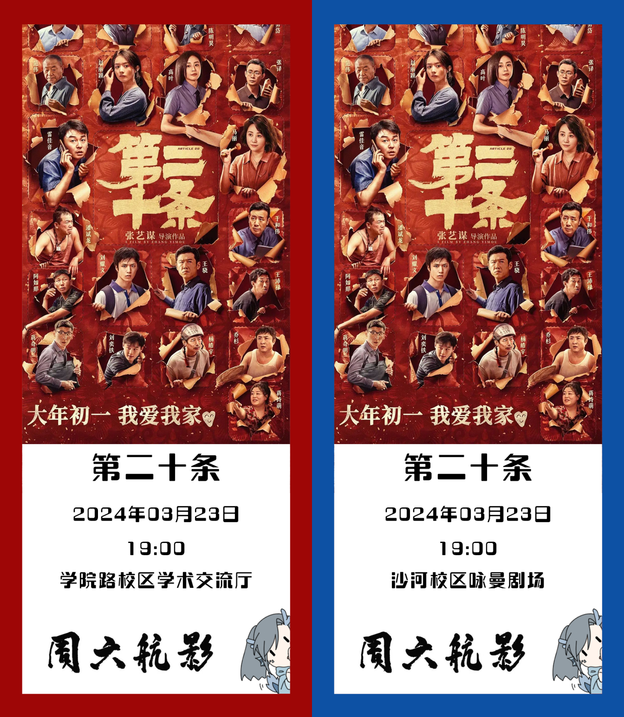 3月23日(周六)19:00,學院路校區學術交流廳、沙河校區詠曼劇場同步放映!