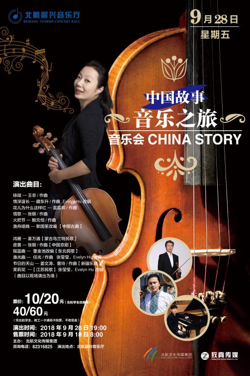 “中國故事音樂之旅”專場音樂會2015年在美國加州的一個文化藝術(shù)中心首演,受到歡迎,在國內(nèi)一些城市持續(xù)演出了兩年,反響很好。當(dāng)今很多年輕人已經(jīng)不太了解中國傳統(tǒng)的音樂文化,希望能以音樂會的形式將中國文化傳承下去。音樂會有一些原創(chuàng)作品,中國音樂學(xué)院作曲系教授王非的《詠賦》,是他1985年為首屆藝術(shù)院校青少年大提琴比賽而創(chuàng)作的,旋律優(yōu)美,富有詩意,講究文采、韻律,兼具詩歌和散文的美;張朝作曲的《情歌》,表達對家鄉(xiāng)的深情回憶以及對愛情的美好憧憬。鮑元愷的《火把節(jié)》,描繪了云南彝族火把節(jié)時載歌載舞的傳統(tǒng)習(xí)俗。其它作品還有張瑩瑩與美國作曲家Evelyn Hu合作將中國民歌《茉莉花》、弦樂四重奏《情深誼長》及歌曲《漁光曲》分別改編成大提琴獨奏曲。
