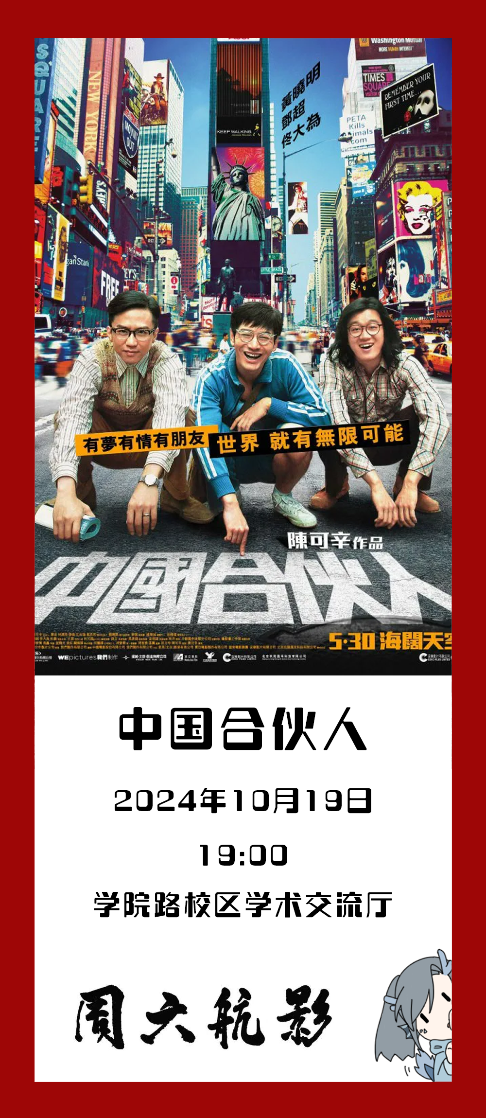 「周六航影」第六周讓我們一起走進(jìn)《中國(guó)合伙人》,走進(jìn)三個(gè)摯友的創(chuàng)業(yè)旅程,看他們,從青澀懵懂到逆風(fēng)飛揚(yáng)