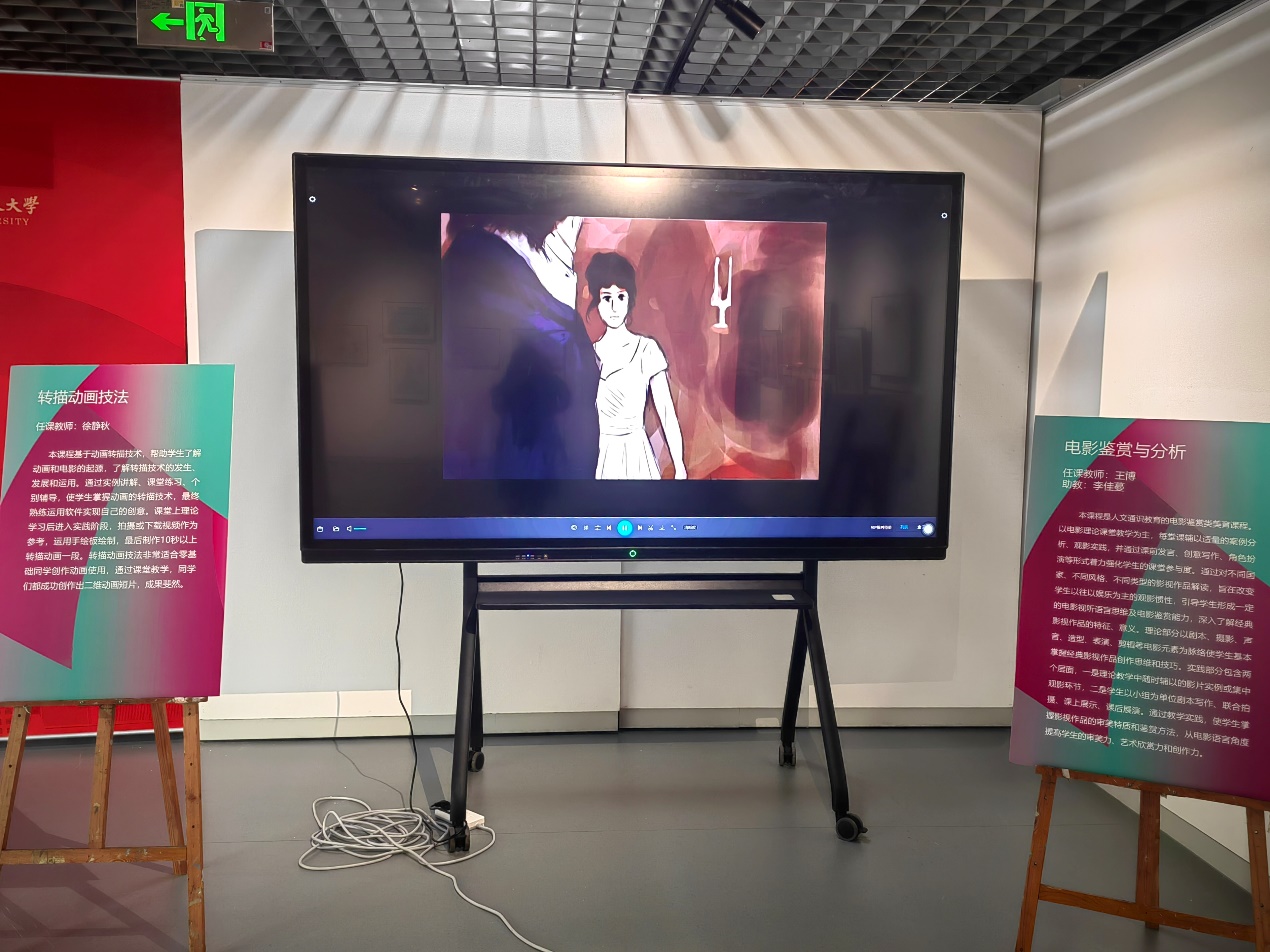本次聯(lián)展以“星夢(mèng)高遠(yuǎn),美潤(rùn)啟航”為主題,包括《海報(bào)設(shè)計(jì)與制作》《攝影藝術(shù)鑒賞與基礎(chǔ)》《透視與空間》《電影鑒賞與分析》《中國(guó)美術(shù)史》《轉(zhuǎn)描動(dòng)畫技法》《西方美術(shù)與觀念》《空天產(chǎn)品美學(xué)設(shè)計(jì)》《水彩畫技法》等課程,包含繪畫、海報(bào)、影像等類型作品,集中展示了二百余名學(xué)生的創(chuàng)作作品。