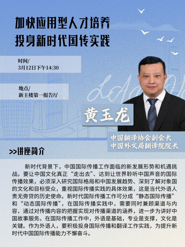 黃玉龍,中國翻譯協(xié)會副會長,中國外文局翻譯院院長。