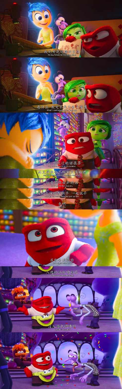 影片賦予情緒角色真正的復雜性,當所有情緒在片尾達成"不和諧和弦",才真正奏響成長的真相。記憶粒子的流體渲染,思維宮殿的賽博朋克式擴容,以及用8-bit像素風閃回童年記憶的巧思,共同構建了動畫電影史上最細膩的腦內元宇宙。