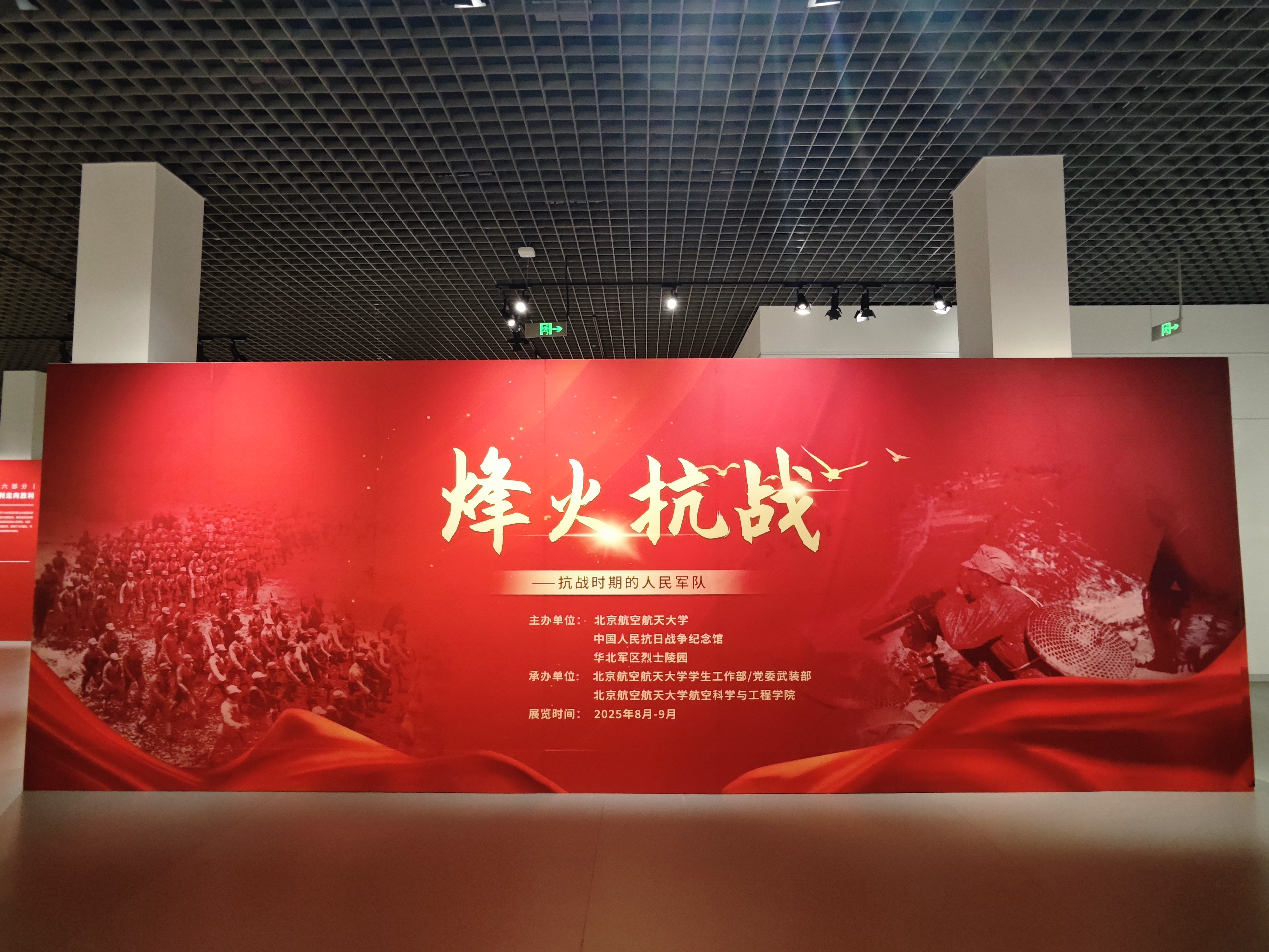 本次展覽《烽火抗戰——抗戰時期的人民軍隊》,由北京航空航天大學、中國人民抗日戰爭紀念館與華北軍區烈士陵園共同主辦,北京航空航天大學學生工作部/黨委武裝部和航空科學與工程學院承辦,旨在弘揚愛國主義精神,讓后人銘記抗戰時期人民軍隊的英勇事跡。