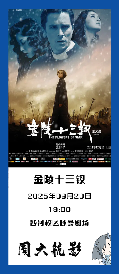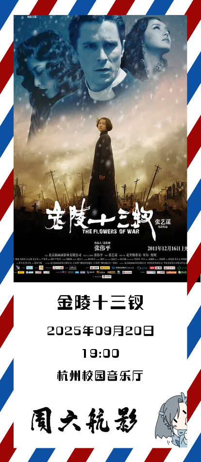 「周六航影」第二周讓我們一起走進《金陵十三釵》看硝煙彌漫的南京城里不同身份的人如何在絕境中抉擇,感受人性微光如何穿透黑暗。