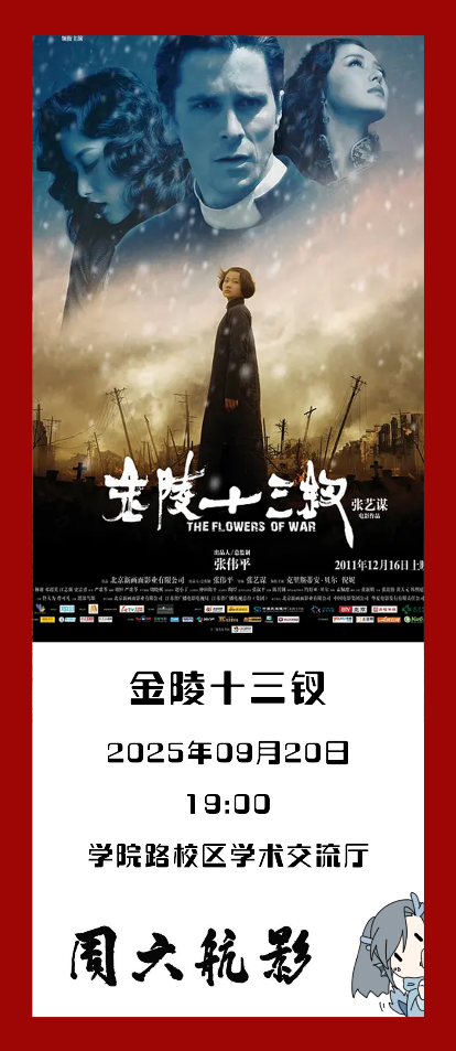 感謝各位小伙伴的守望與支持,以下是本周觀影投票結果,經過兩地三校區師生投票選擇《金陵十三釵》,成為本周的第一選擇。
