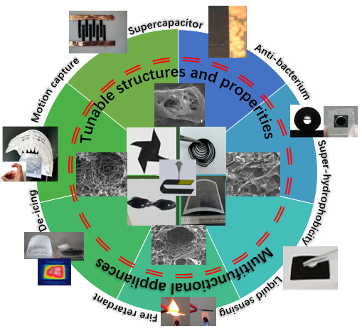 通過系統的加工結構性能關系探索研究,該先進激光誘導GP材料具備優異的力學、電學、熱學、電化學等特性,可用于可穿戴手勢識別、機器人動作捕捉、油水分離、抗菌界面以及實現具有阻燃、防/除冰、結構健康監測等功能的先進航空樹脂基復合材料結構,未來具有廣闊的商業化前景。