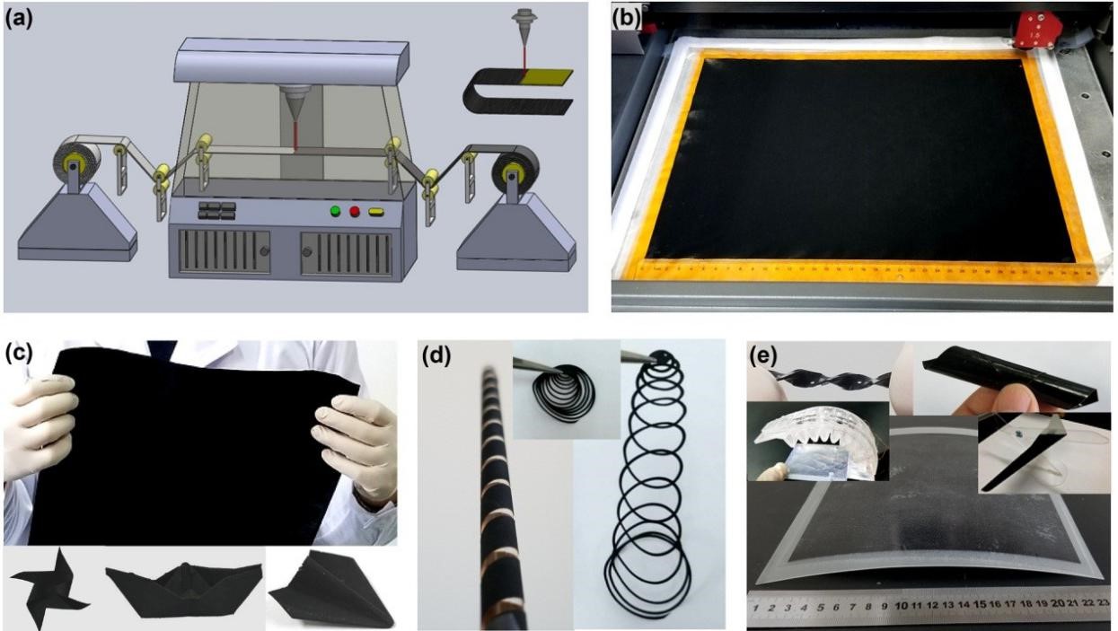圖1. 石墨烯紙的先進激光連續制造及多模式形態加工